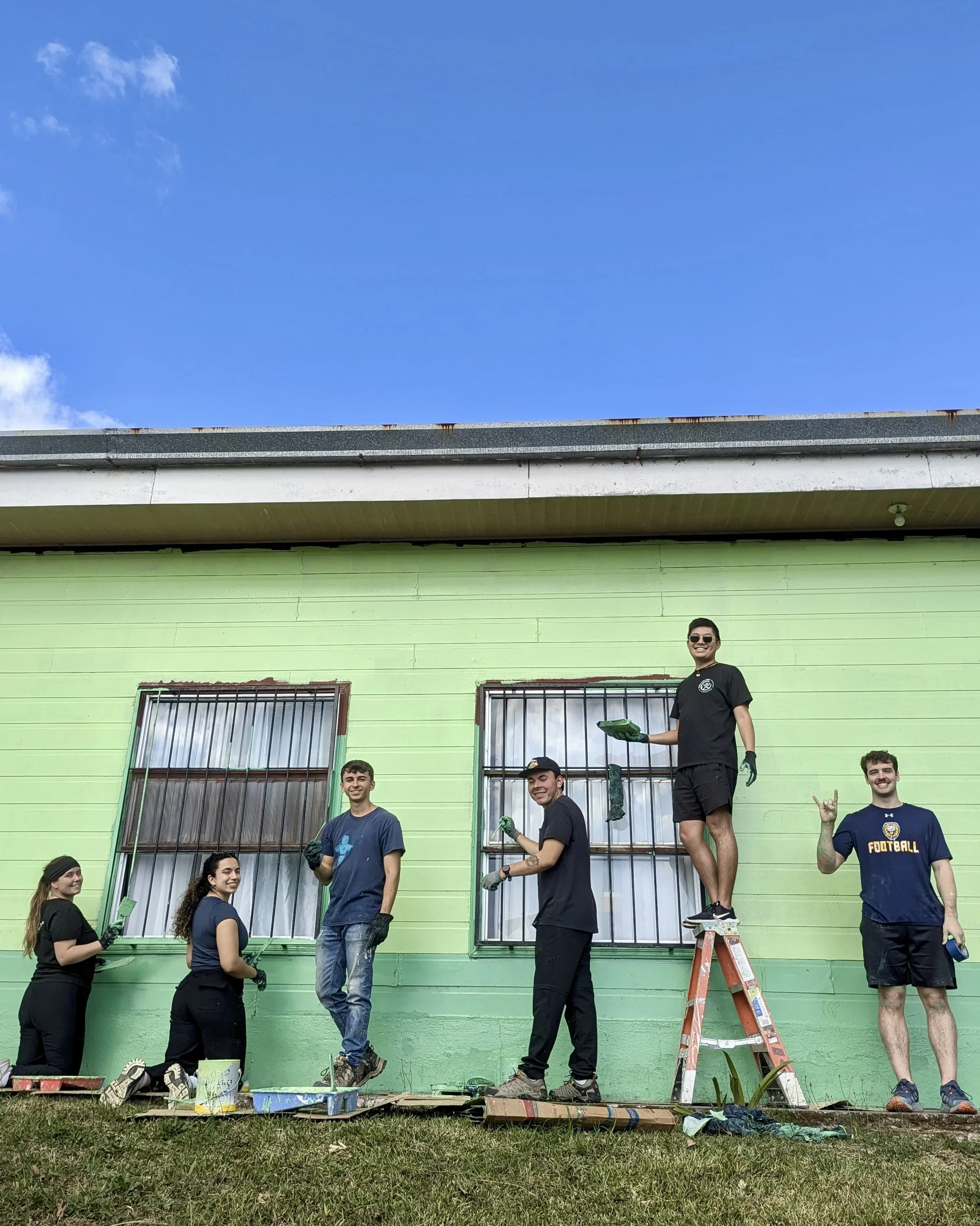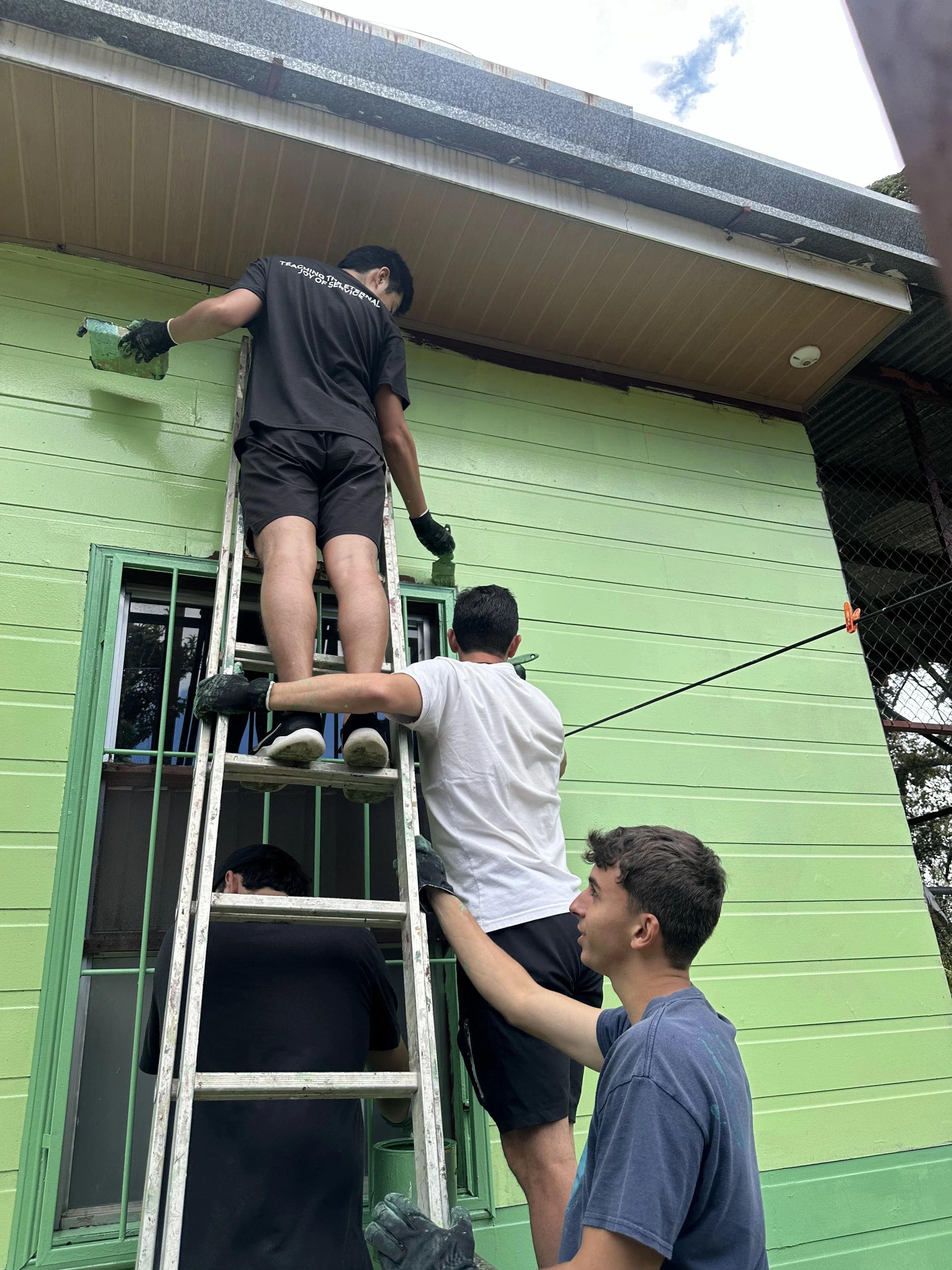 The team continued one of our projects for the week, which is repainting one of the houses. During our lunch break, we got to play a volleyball game together! 🎨🏐
